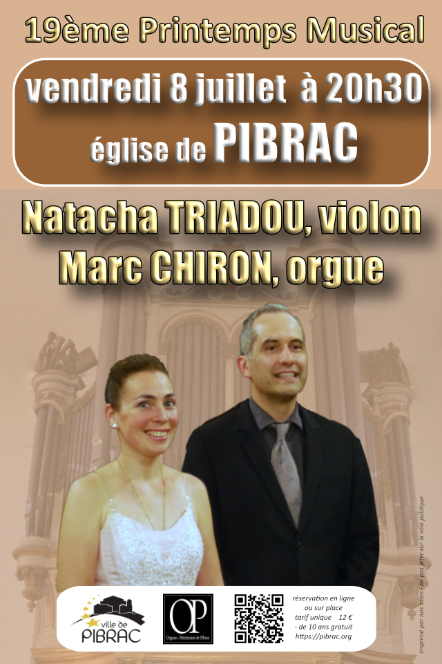 Le duo formé par la violoniste Natacha TRIADOU et l’organiste Marc CHIRON donne de nombreux concerts avec succès depuis plusieurs années : Festival International Toulouse les Orgues, Festival Bach, Festival d’Albi, Les Musicales du Causse, Abbaye de Sylvanès, Cathédrale de Cahors, Cathédrale d’Auch etc.