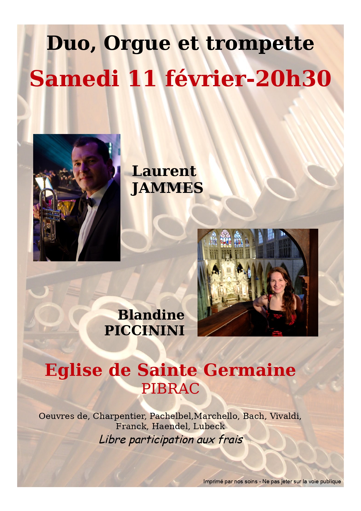 Orgue et trompette à PIBRAC – Samedi 11 février 2023 à 20h30
