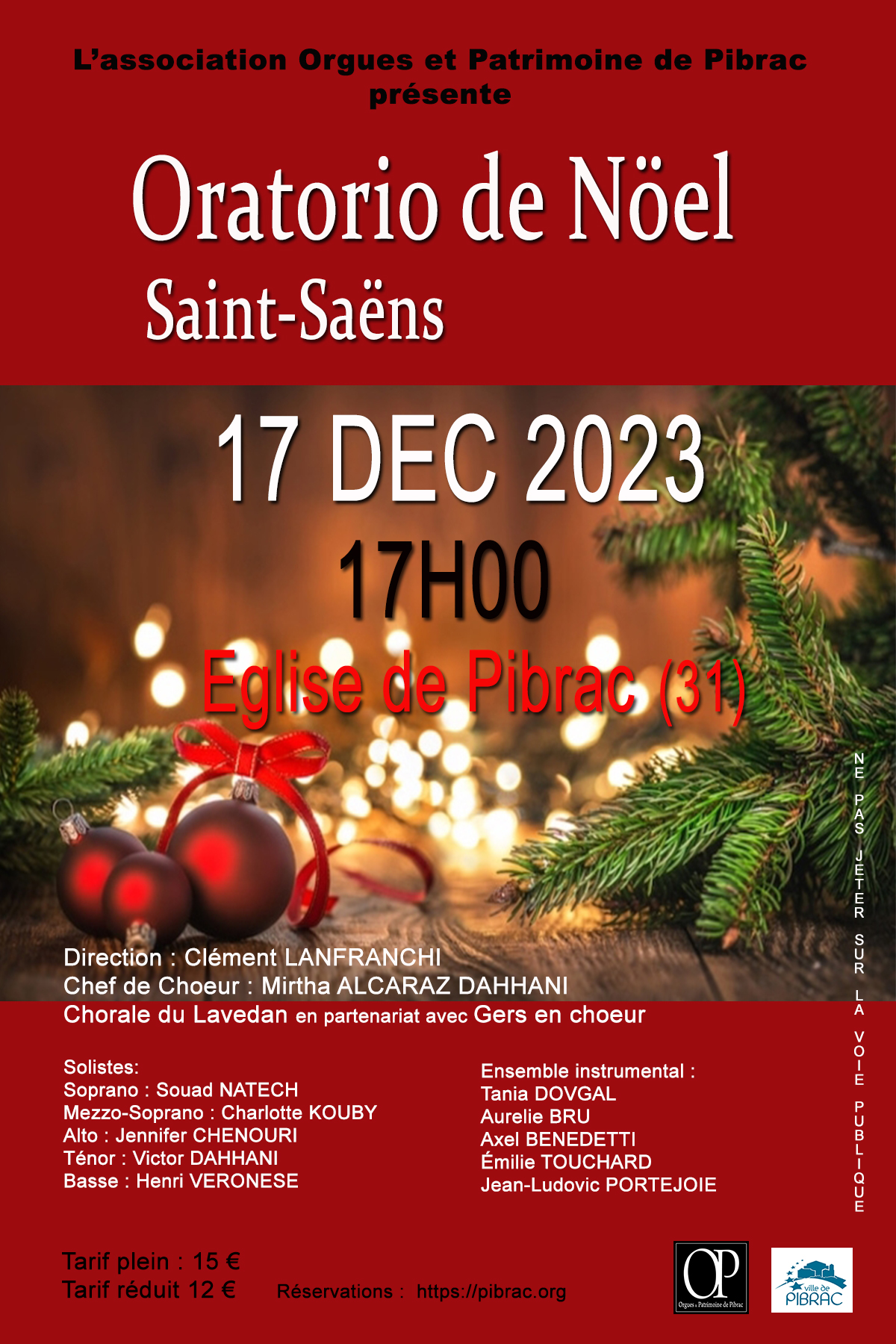 Oratorio de Noël à Pibrac, le dimanche 17 décembre 2023 à 17h Image 30 novembre 20237 décembre 2023 orguesetpat Non classé L’association Orgues et Patrimoine de Pibrac présente : CONCERT ORATORIO DE NOËL de Saint-Saëns Chorale du LAVEDAN en partenariat avec GERS EN CHOEUR Dimanche 17 décembre 2023 église de Pibrac (31) Partager : Cliquer pour partager sur X(ouvre dans une nouvelle fenêtre) X Cliquez pour partager sur Facebook(ouvre dans une nouvelle fenêtre) Facebook J’aime chargement…